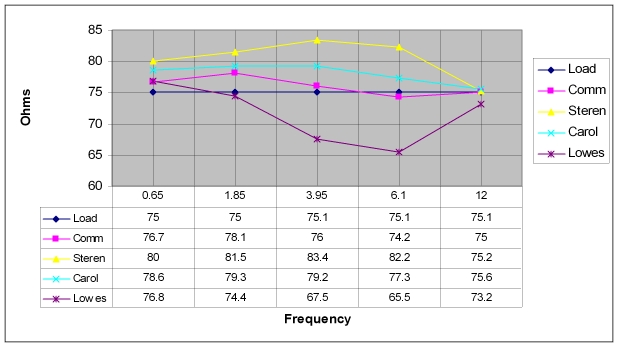 The tests were measuring the input impedance of the approximate 35 foot lengths of cable with the load at the other end.