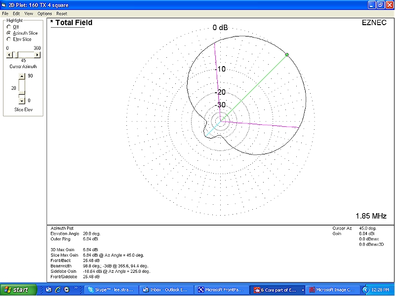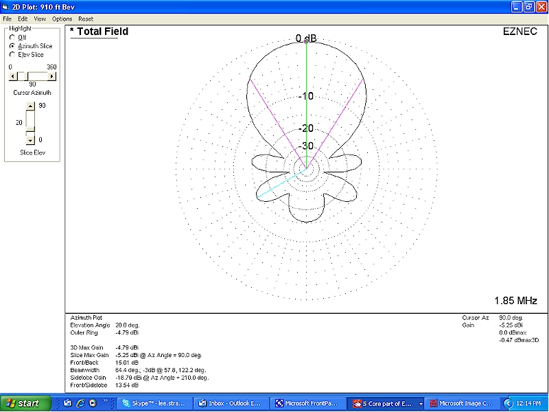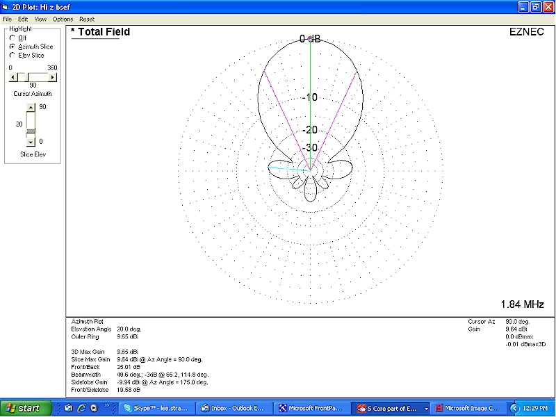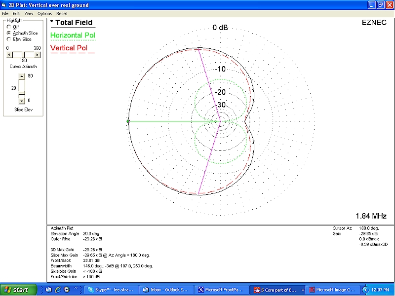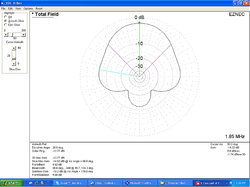 Comparison Chart of Different Rx antennas. Gain, front to back, and RDF computed at 20 degrees elevation over average ground and at 1.850 Mhz. Because of the same elevation angle for all antennas, some will not appear as they would at maximum gain.