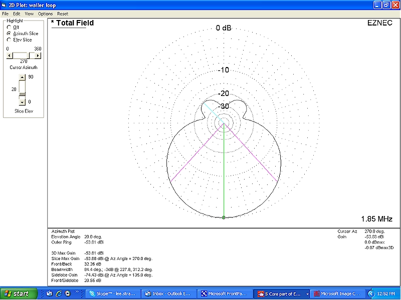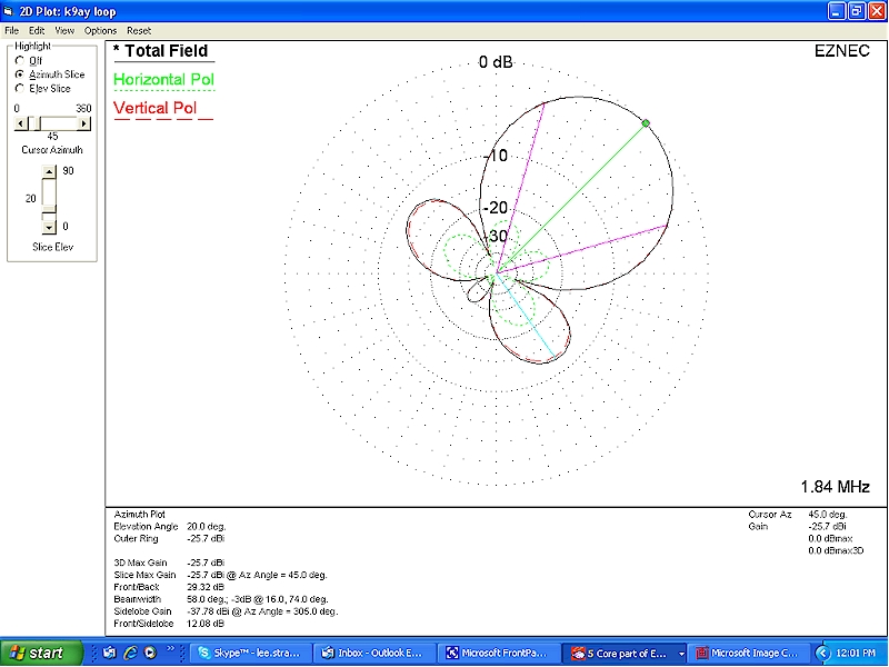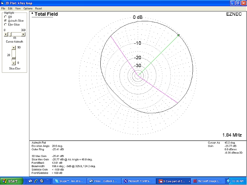 There are many pages on the web describing the K9AY loop. More discussion of it here is not necessary. With the exception that my observation is many people build this antenna and fiddle with the termination resistor to try for the ultimate. Some even make them remote control. My tests show that changing the termination from 330 ohms to 550 ohms only varies the RDF by .11 out of 7.2. Hardly worth ever worrying about for copying any DX unless you need the Front to back rejection for local noise.